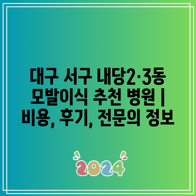 대구 서구 내당2·3동 모발이식 추천 병원 | 비용, 후기, 전문의 정보