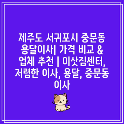 제주도 서귀포시 중문동 용달이사| 가격 비교 & 업체 추천 | 이삿짐센터, 저렴한 이사, 용달, 중문동 이사