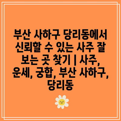 부산 사하구 당리동에서 신뢰할 수 있는 사주 잘 보는 곳 찾기 | 사주, 운세, 궁합, 부산 사하구, 당리동