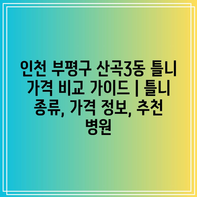 인천 부평구 산곡3동 틀니 가격 비교 가이드 | 틀니 종류, 가격 정보, 추천 병원