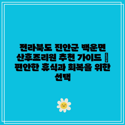 전라북도 진안군 백운면 산후조리원 추천 가이드 | 편안한 휴식과 회복을 위한 선택